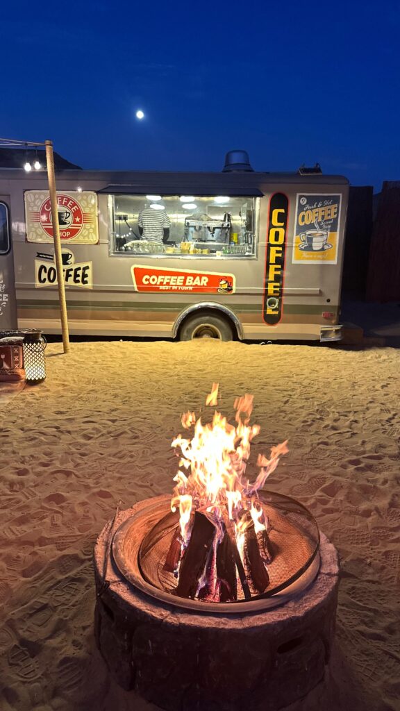 In addition to the caravan, they host perfectly fitting yet unique programmes such as The Caravan Cinema Club and a Sound Bath Experience. The desert setting concurrently provides plenty of mindful moments to be experienced in grandeur.